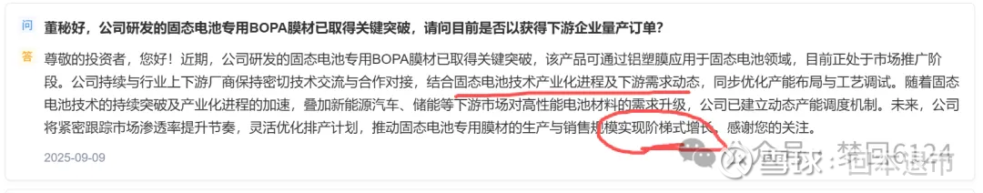 中报核心亮点:全球唯二量产铝塑膜尼龙层,技术壁垒突破2025年中报首次确认,公司新能源BOPA膜材(PHA锂电膜)已应用于固态电池铝塑封装膜核心层,成为全球除日本厂商外唯一实现量产的材料供应商。