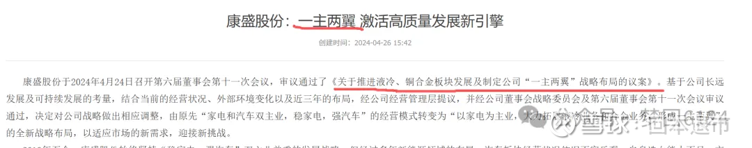 康盛股份正从传统家电制冷业务向液冷和高端铜合金材料领域拓展,形成"一主两翼"战略。2023年液冷业务营收占比从不足5% 提升至15%,毛利率达40%(传统业务约20%),利润结构改善明显。
