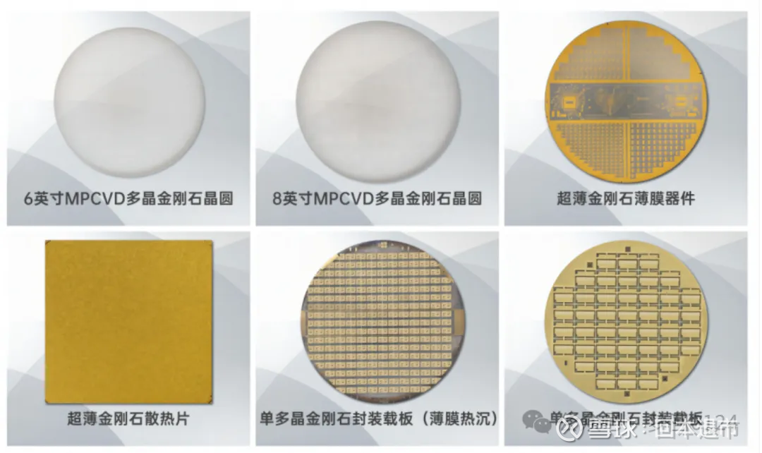 2025年初,公司成功生长出半导体用5~30μm超薄6~8英寸多晶金刚石晶圆热沉材料,厚度0.02~1mm,均匀性良好,热导率达1000~2200W/m·K,关键指标均满足客户需求并达到量产标准。目前,这些产品已通过华为、中芯国际等头部客户验证,并进入量产阶段,特别适用于栅极驱动芯片、电源管理芯片等高功率模拟芯片的散热场景。