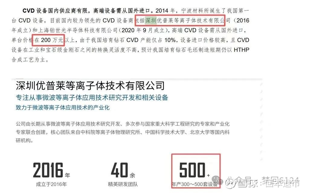 优普莱作为国内极少数能够生产4至10英寸多晶金刚石晶圆MPCVD设备的高科技企业,其设备制造能力是生产高品质第三代半导体金刚石材料的先决条件。MPCVD(微波等离子体化学气相沉积)法是制备高纯度、大面积、单/多晶金刚石的核心尖端设备,技术壁垒极高。