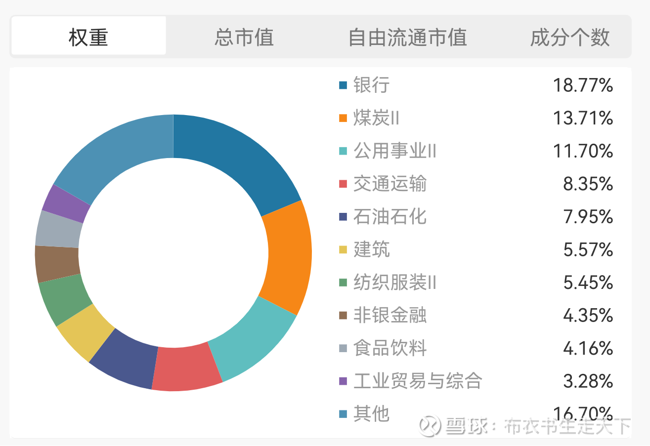 更重要的是,该指数的成分股中,银行占比并不大,远小于中证红利低波指数。