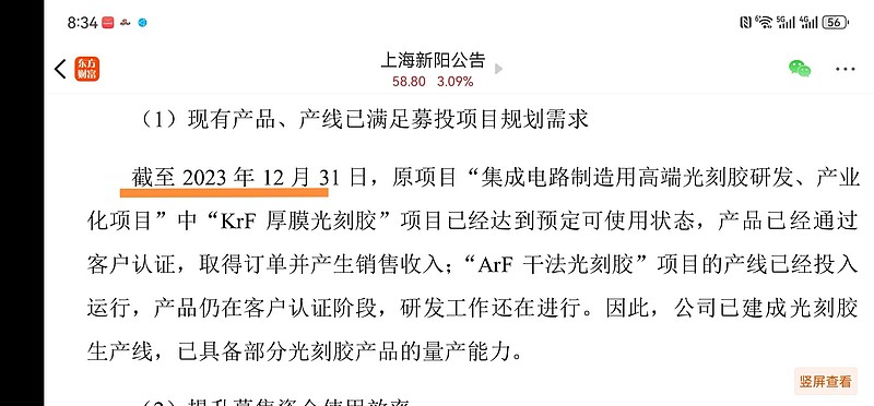 2022年4月12日,上海新阳在投资者互动平台表示,公司与中芯北方搭建的1400光刻机安装调试基本完毕。进行开展干法Arf的验证,可见干法Arf光刻胶在中芯北方(中芯国际已收购中芯北方余下49%股权成为全资子公司)已是有几年的验证时间了,验证也应该是七七八八了,而且新阳的干法Arf光刻胶产线也是早已运行,新阳的Arf干法光刻胶能否上量上量速度看的就是客户的导入意愿了,只是中芯国际、华虹近100%产能利用率的前题之下而根本就是无法可以让新阳的Arf干法光刻胶在产线去验证试用,而且还有置换成本方方面面的考虑。新阳与中芯国际合作验证的光刻胶可以说是备用产品,只有某种契机(如小本本短供断供)才会有置换动力。