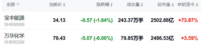 今天宝丰能源微跌、万华化学巨跌,宝丰市值正式超越万华