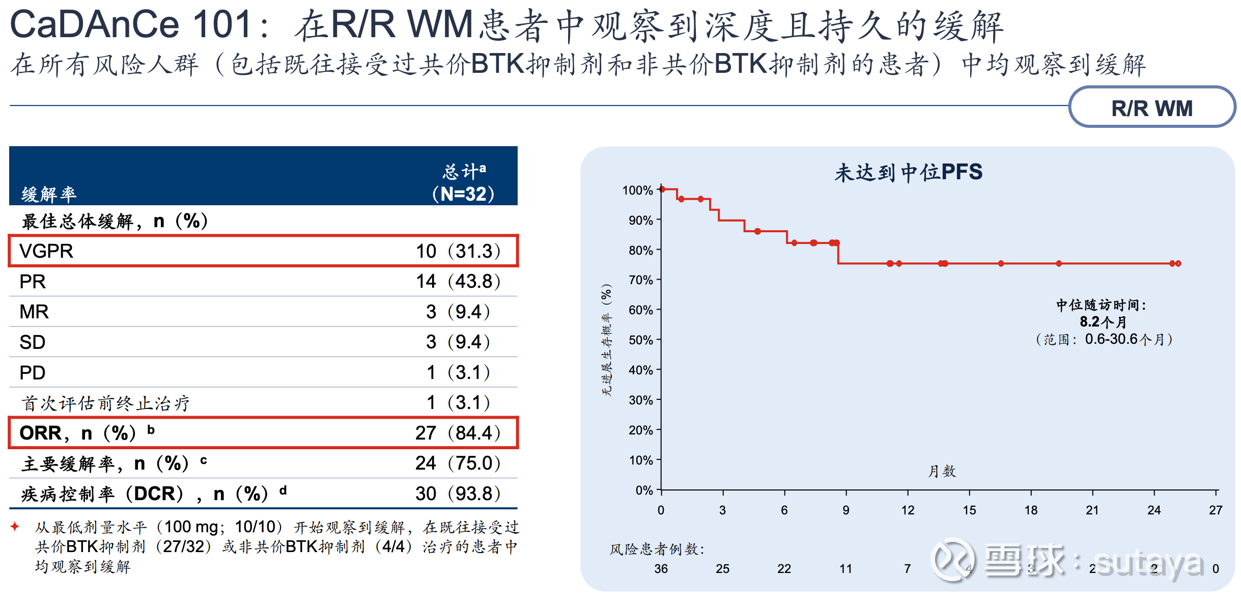 泽布替尼RR WM ORR 86% VGPR 36%。。。 BTK CDAC 4线患者竟然效果类似。