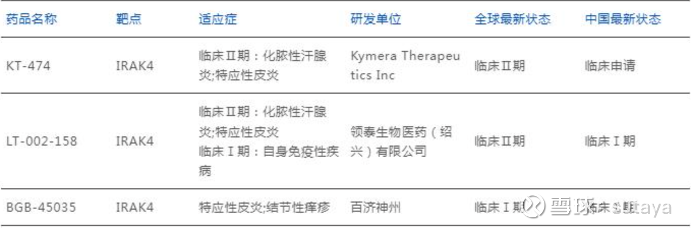 目前全球范围内已有多条IRAK4蛋白降解剂管线进入临床研究阶段,在研管线中研发进度最快的已进入临床Ⅱ期。适应症方面,IRAK4蛋白降解剂已经显示出在治疗特应性皮炎和化脓性汗腺炎等疾病中的潜力。