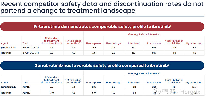 虽然不能直接对比,同为泽布替尼头对头实验,可以参照的看一看,安全性泽布替尼好一大截