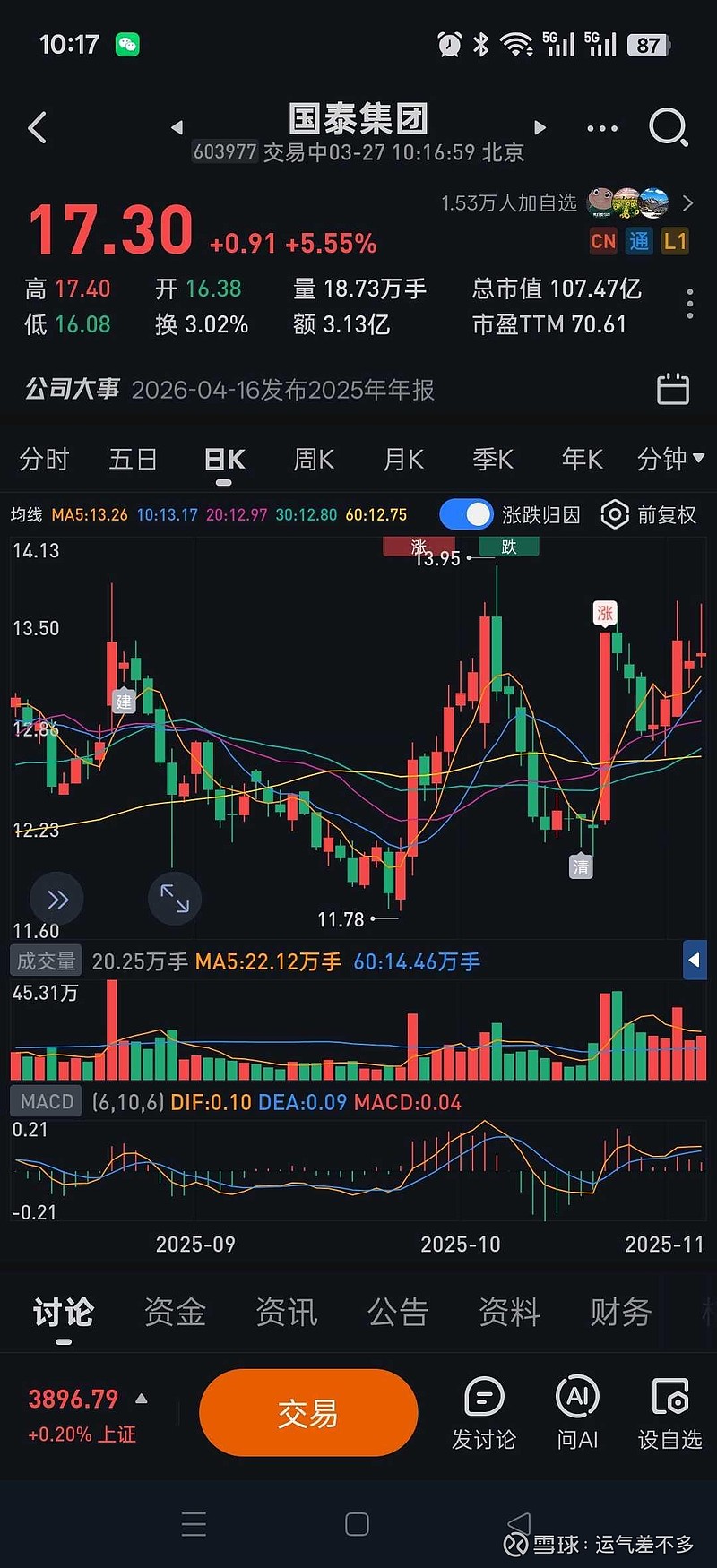 $国泰集团(SH603977)$
