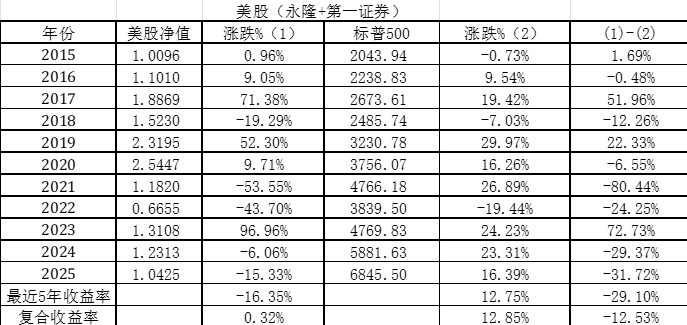 2025年美股市场的投资收益率为-15.33%,同期标普500的表现为16.39%,跑输指数31.72%,如表3所示。美股账户仍然单吊亿航智能,亿航全年下跌16.29%。低空经济被确定为国家战略性新兴产业,亿航是目前全球唯一拿到适航三证的低空航空器企业。国家发改委将低空经济的发展原则定调为“先载货后载人、先隔离后融合、先远郊后城区”,因此,亿航主动放慢了发展速度。