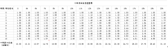 图3 十年回本估值速查表