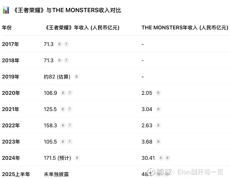 【更正:王者荣耀收入数据错误,应为500亿量级。。。】非常有趣,王者荣耀、labubu这两个IP在今年都是10周年,虽然载体不同,但都是长青的IP,两家公司也都致力于打造更多的长青IP。对比一下收入,labubu今年的收入应该会接近140亿,王者荣耀可能会超过200亿?10年之后会怎么样,欢迎留下你的看法。我预计最快2026年labubu的收入就会超过王者荣耀,这应该会颠覆很多人对IP的认识。$泡泡玛特(09992)$ $腾讯控股(00700)$