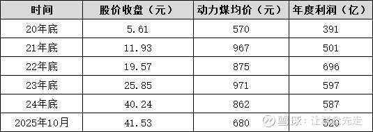 ②这期间神华的利润虽然维持在500亿-600亿,但整体业绩重心是在下移。但从动力煤均价看,22-25年煤价总体下行的年份,利润反而都比创出最高煤价的21年整体要强。
