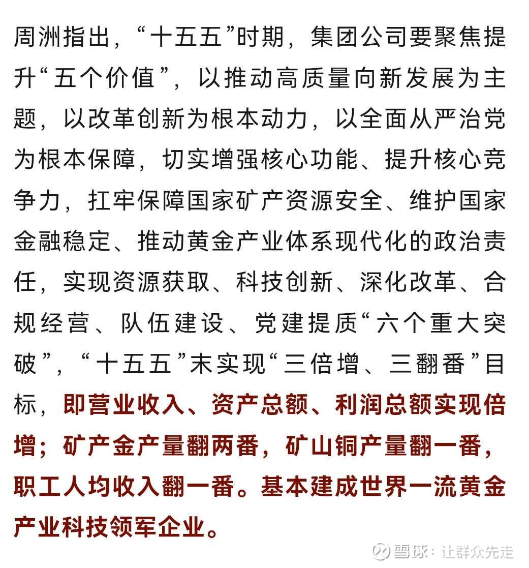1、昨天中国黄金集团召开了年度工作会议,会议明确集团十五五要实现矿产金产量翻两番。