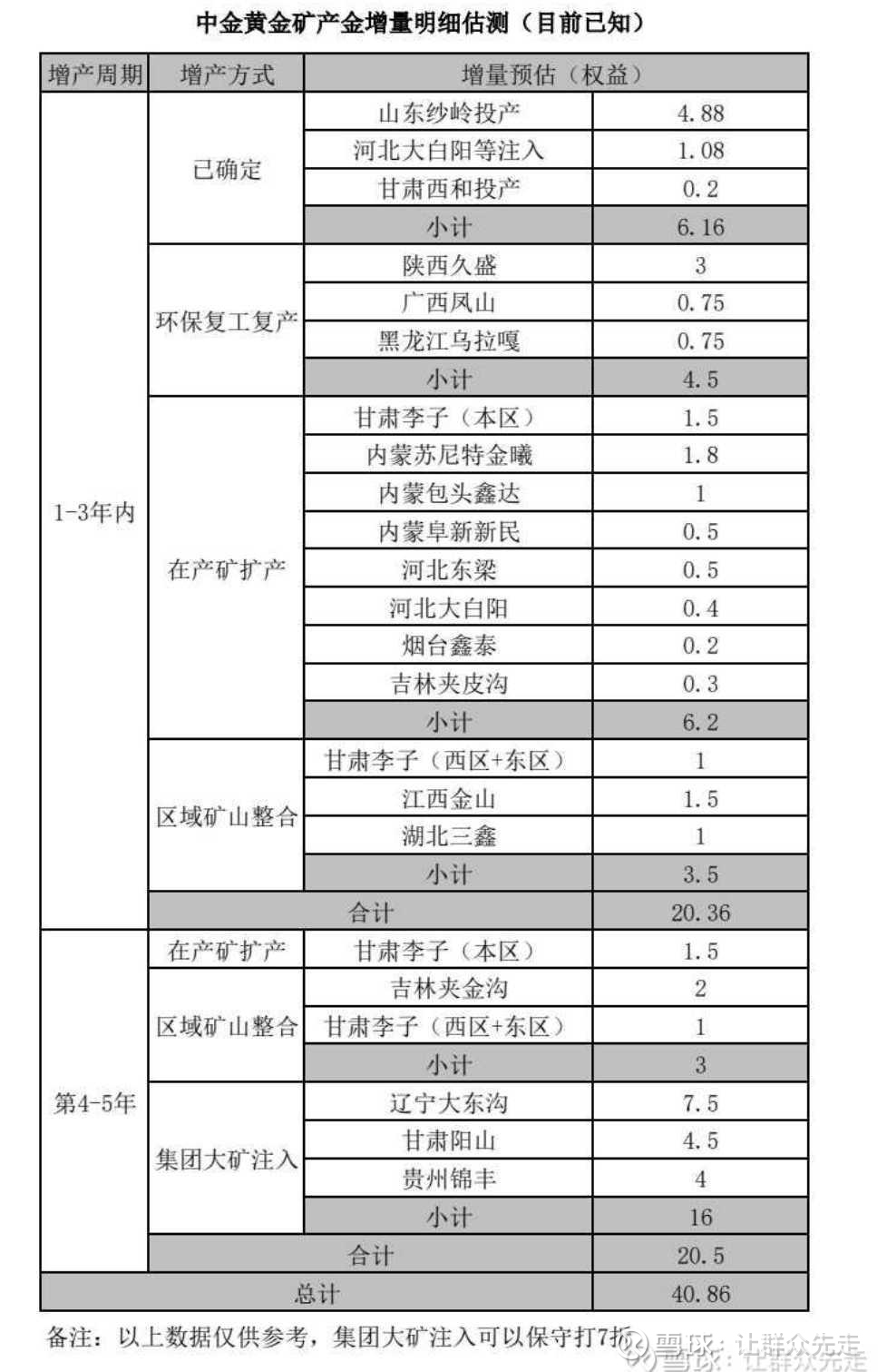 3、下面这张表是去年估的增加40.8吨权益产量,也就是现有14.5+40.8=55.3吨,参考集团翻两番是14.5×4=58吨,我还估保守了。不一定完全准确,大致参考吧。