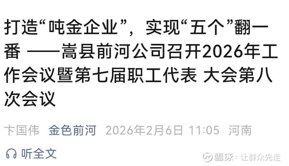 1、嵩县前河是家里面的小个子,24年产量仅0.4吨左右,今天跑出来官宣,要参与嵩县黄金资源基地,要搞吨矿。