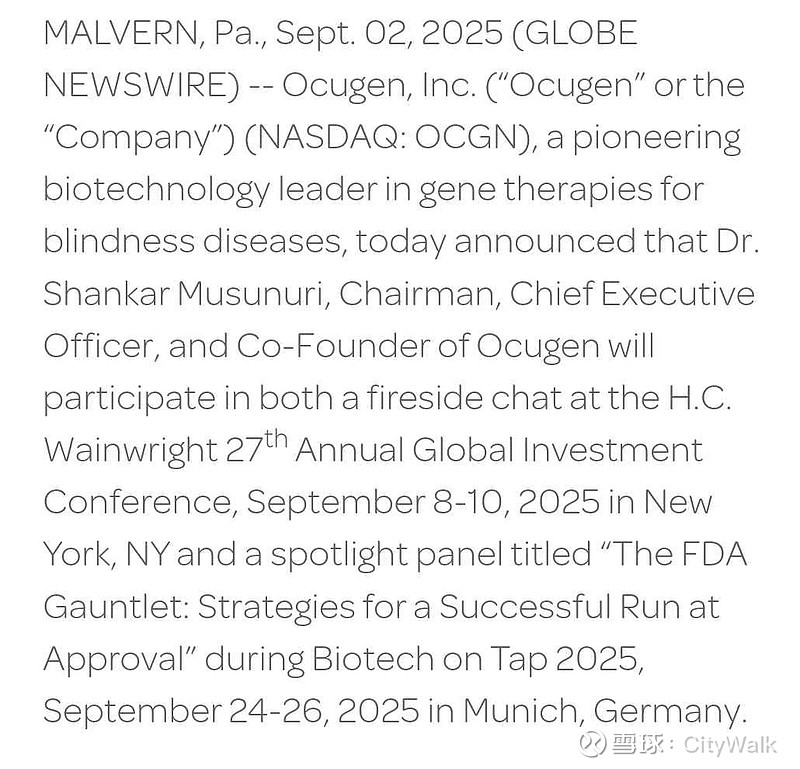 $康希诺(SH688185)$ $康希诺生物(06185)$ 康希诺打野能成功吗?24年6月,OCU400的三期临床试验完成首例患者给药。今年年底,三期数据应该能出来。Ocugen本来预期也是明年上半年,欧美同步递交上市申请,9月25日,Ocugen董事长参加慕尼黑一个会议,有个小组讨论话题,“成功通过FDA审批的策略”。