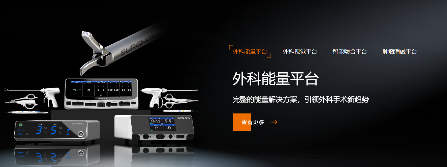 目前,公司已构建外科能量、智能吻合、外科视觉、肿瘤消融四大平台,面向全球提供微创外科治疗整体解决方案,产品主要包括超声软组织切割止血设备、超声高频外科集成手术设备、超声高频大血管闭合集成手术设备、电动腔镜直线型切割吻合器、3D全高清、3D全高清荧光、3D4K、3D4K荧光电子胸腹腔镜以及4K、4K荧光光学硬镜成像系统、白光及荧光光源、气腹机、陡脉冲治疗仪、微波消融仪、射频消融仪等,涵盖微创手术全过程中的设备与器械。其中,多款产品已获CE认证以及NMPA、FDA的批准,产品及服务已进入欧美亚非的六十多个国家和地区。