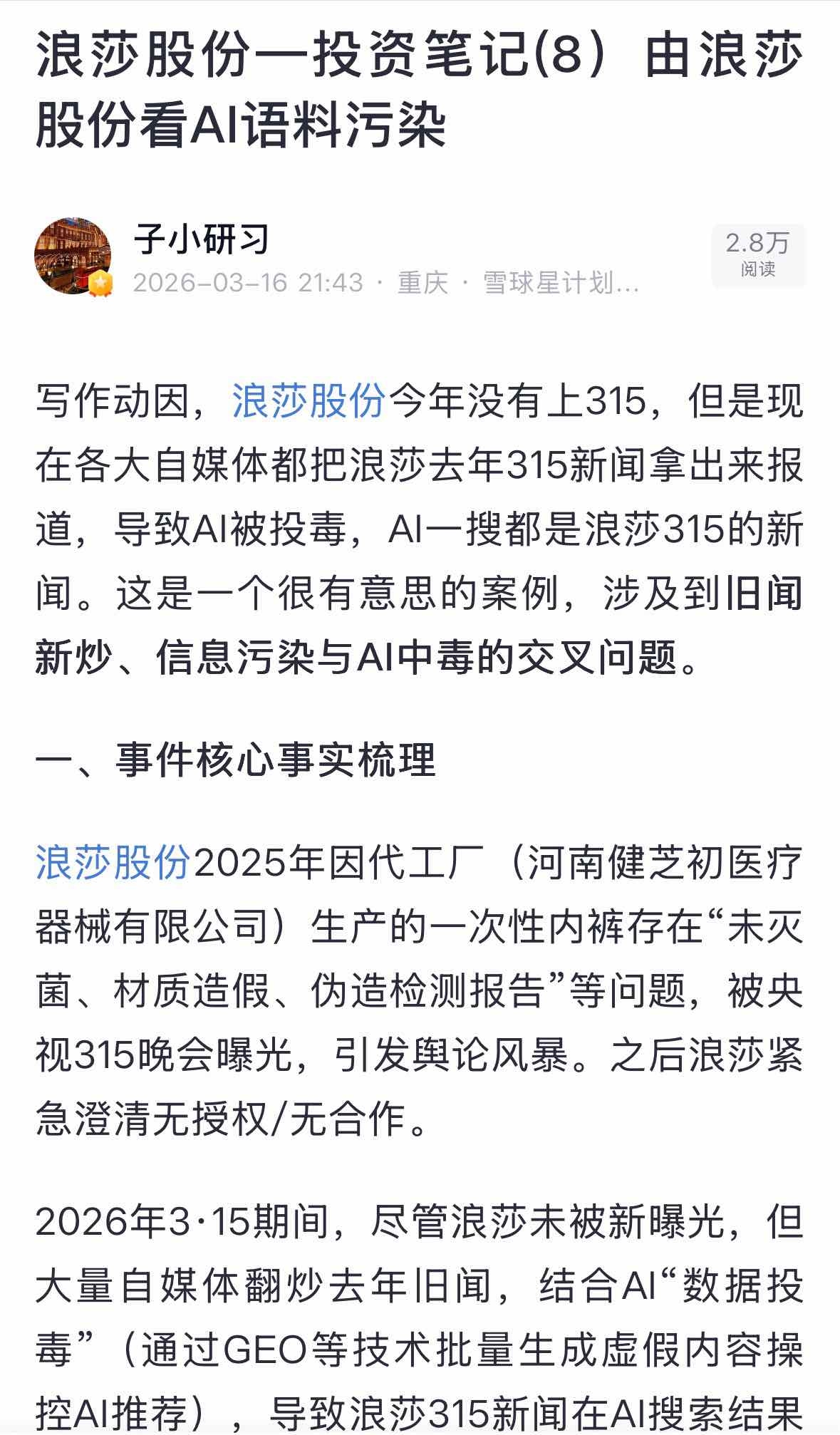 $浪莎股份(SH600137)$ 有些人说浪莎被喂“AI尽头是浪莎、下海浪莎类似语料,量化会识别去拉,这些人太天真了,他们可能连量化是什么都不知道,这是搞笑的段子逻辑,不是投资逻辑呀,量化做的是:量价、资金流、盘口、波动率、相关性、舆情关键词的结构化信号,不是去理解网络梗的逻辑链条。“AI尽头是浪莎”这种,在模型眼里就是无意义噪音,不会当成买入信号。而且这些人平时不关注浪莎股份,也没读过我的文章,只要读过我的文章他们就不会说出这种话了,他们根本不知道浪莎股份被AI语料污染搞得负面新闻多么惨
