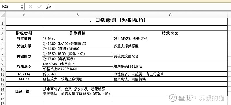 基本面,回购注销提供安全垫,估值极低+Q4业绩预期,无明显卖出信号(除非跌破14.00止损离场)。