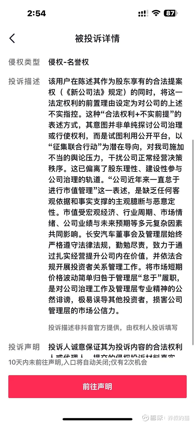 这一法定权利的“前置理由”→不实指控?希望长安汽车法务部,给出一个解释,猫叔没看明白这个前置理由是什么理由,以至于能够被投资者设定为对长安汽车的不实指控。