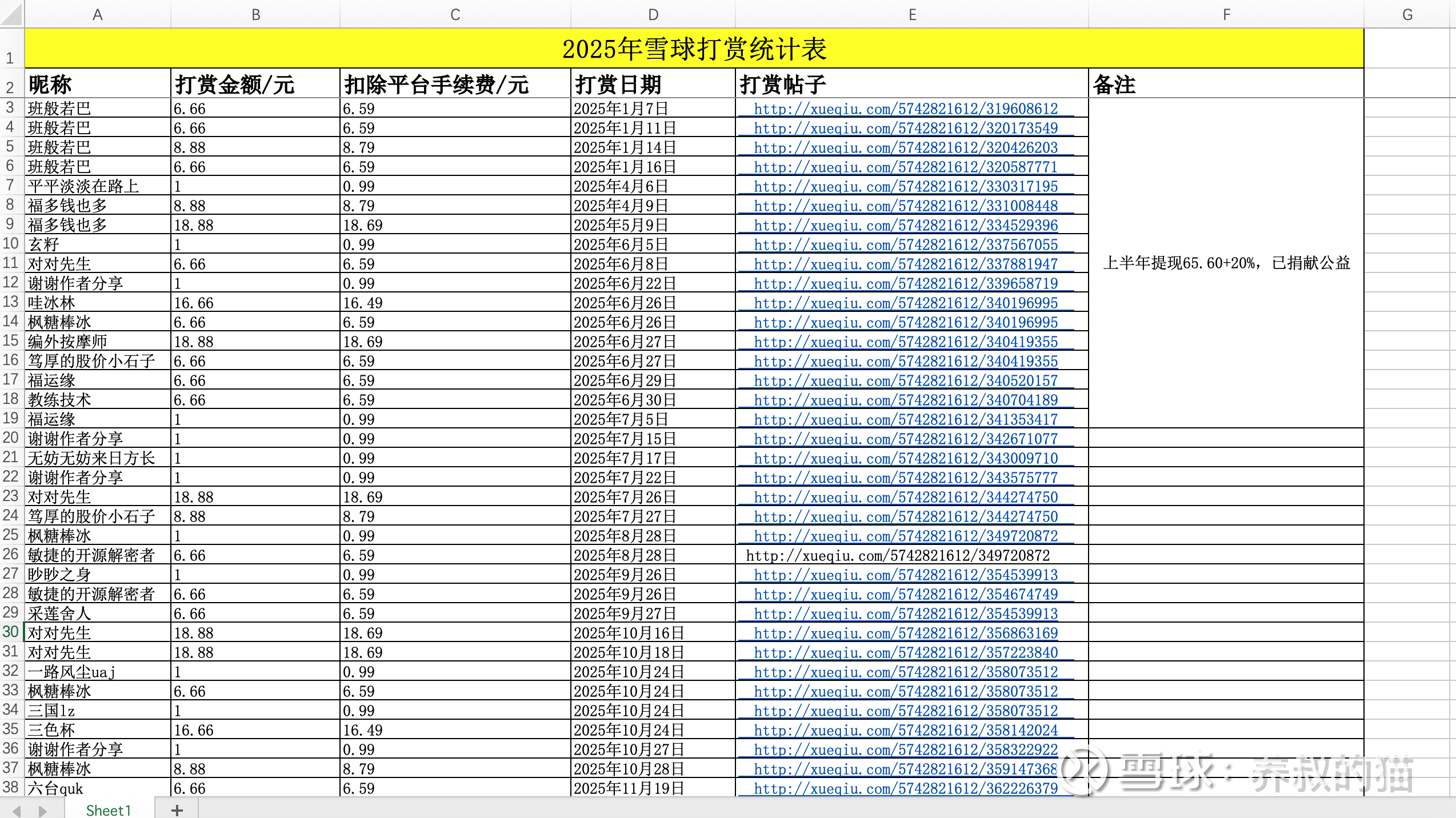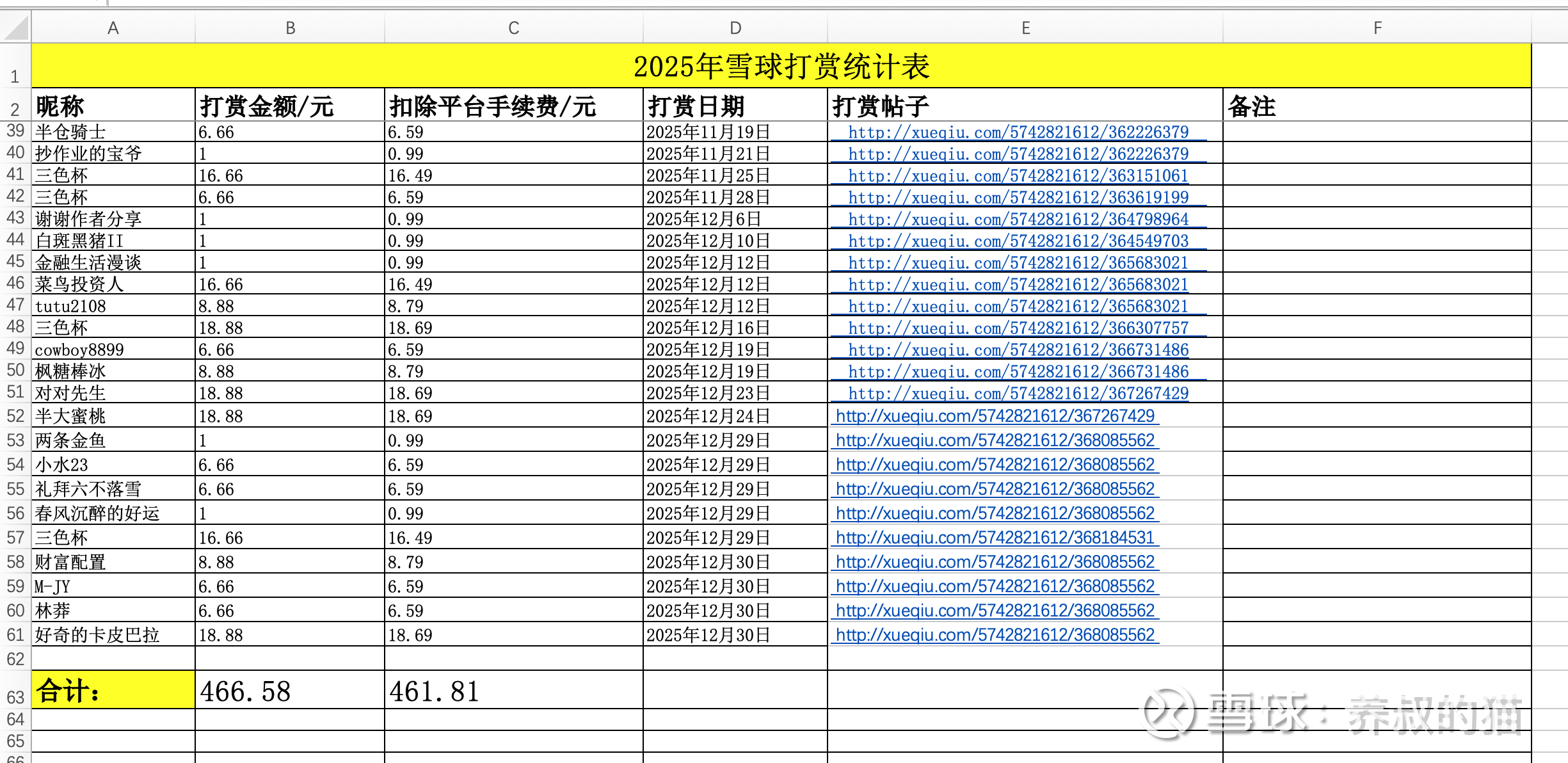 图3-4:雪球球友2025年打赏明细表