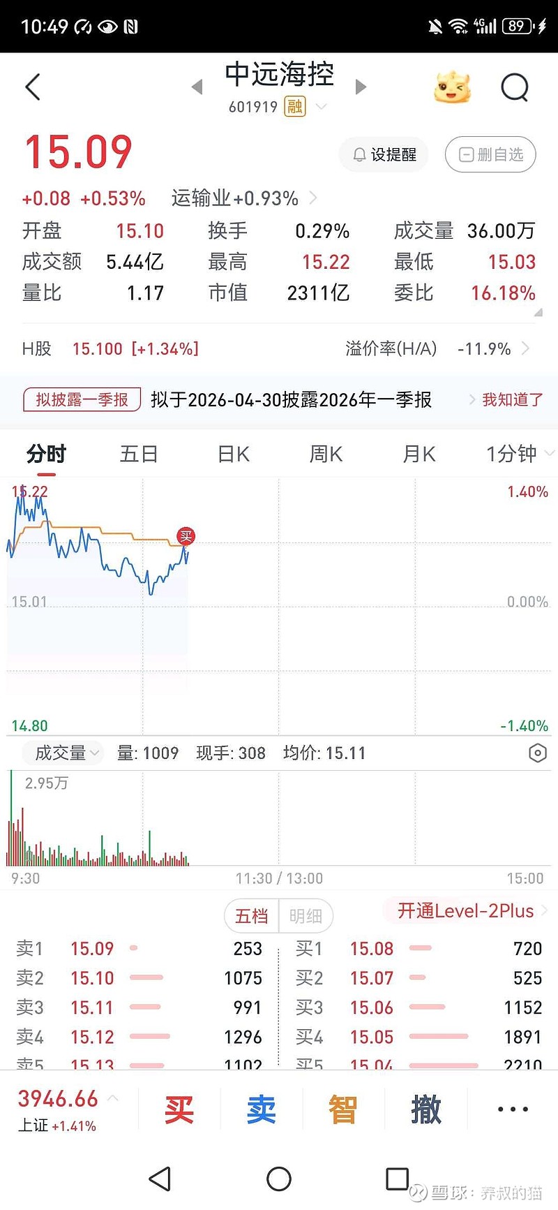 $中远海控(SH601919)$ 致各位中远海控的小空头大空头超级空头,猫叔1508加仓30手,你们可以打压了,打压破15,破14,把猫叔埋了,算你们有本事。嗨起来啊,15都跌不破,没意思,不刺激!$上证指数(SH000001)$