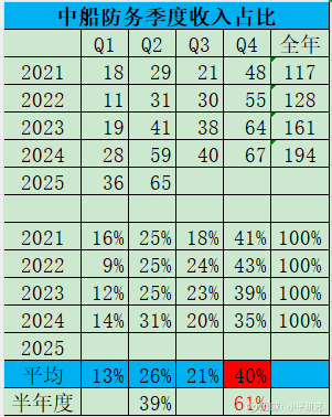 半年度收入占比,防务下半年平均是61%,比船舶+重工的59%也高2%。