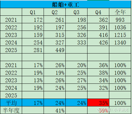 2021-2024年4年时间,船舶行业营业收入在各季度分布不均匀,但是规律性明显。