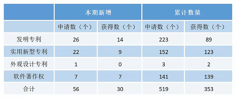 截至上半年末,公司累计获得专利214项,其中发明专利89项,累计获得软件著作权139项。
