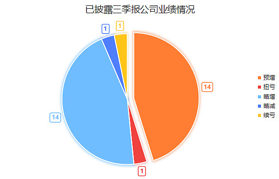 在三季报业绩预喜的上市公司中,基础化工行业有5家,电子行业5家,汽车行业4家,电力设备行业4家,机械设备行业3家。