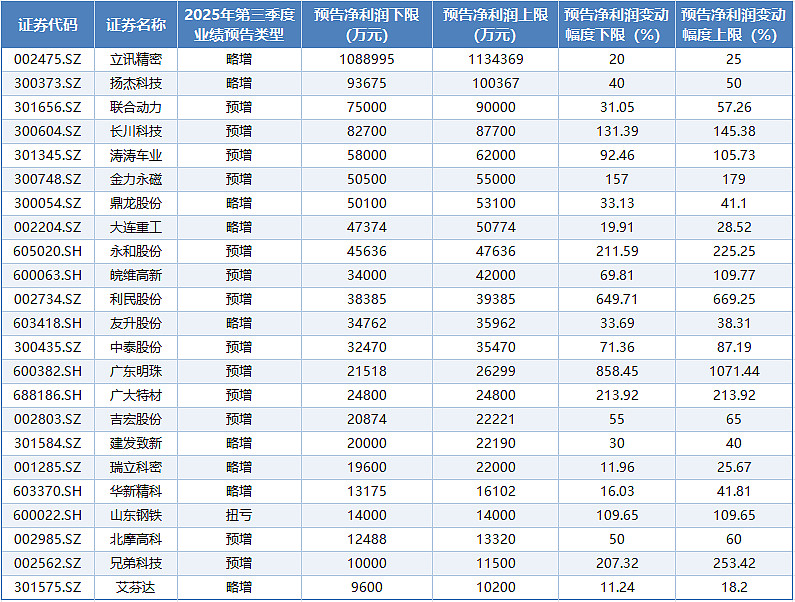 近期,多家A股上市公司披露了2025年前三季度业绩预告。在政策的推动下,市场环境持续向好,部分上市公司业绩表现抢眼。