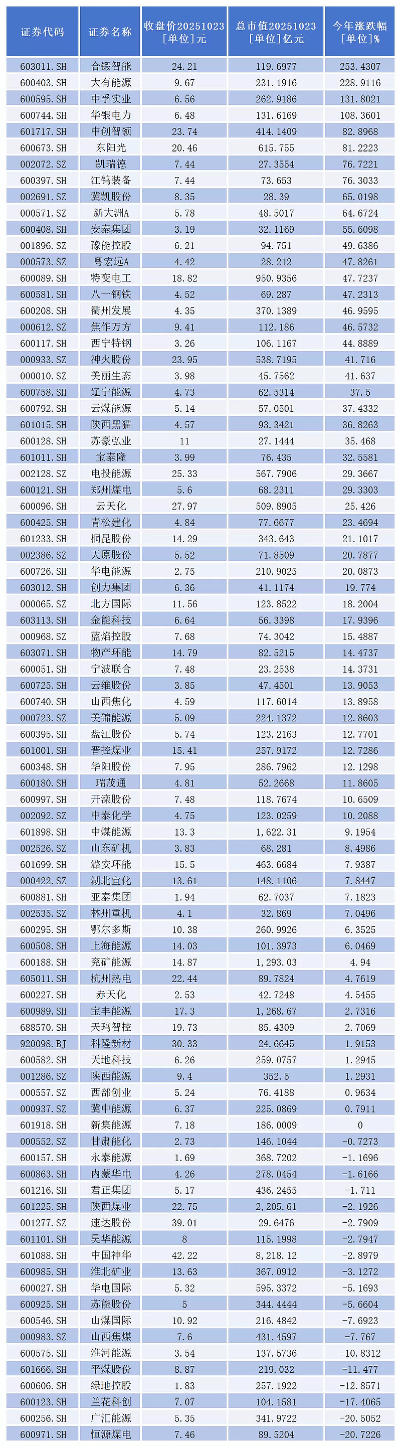 同花顺数据显示,截至10月23日收盘,A股煤炭板块一共有85家上市公司。