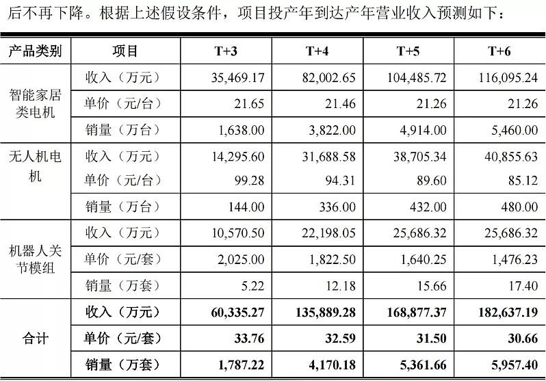 公告显示,本次募投项目实施后,公司将新增智能家居类电机、无人机电机及机器人关节模组三类产品的产能,新增产能分别为3,110.00万台、480.00万台、17.40万台。