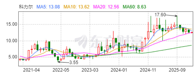 从二级市场表现看,科力尔股价已经从2022年5月3.55元/股的低点,一路飙涨至目前13元/股附近,累计涨幅超250%。