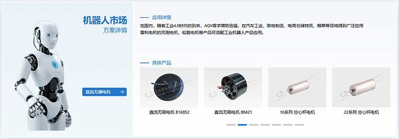 可以看出,在人形机器人的“运动中枢”——关节系统领域,江苏雷利打造了多元化的产品矩阵,精准适配不同部位的运动需求。针对肩、肘、髋、膝等大负载旋转关节,公司推出高度集成的无框力矩电机,具备响应快、体积小、效率高的特点,能够实现精准的力矩控制,保障机器人肢体运动的稳定性;针对腰部、颈部等复合运动关节,研发一体化行星模组,将电机、减速器与编码器高度集成,简化客户装配流程,提升运动控制的协同性;而针对手指、腕部等精细关节,公司提供最小直径仅6mm的空心杯电机,凭借高精度、低惯量、快响应的优势,实现细微动作的精准把控,其性能可与国际同类产品媲美。这些关节产品不仅覆盖人形机器人全身运动单元,更通过技术优化,在负载能力、响应速度等关键指标上实现突破,为机器人灵活运动提供了核心支撑。