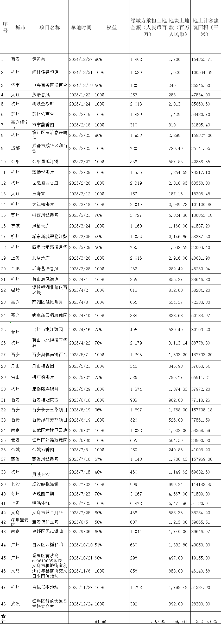 绿城25年新拿地48块,新增项目权益土地款591亿,权益金额比24年的510亿增加了16%。绿城权益拿地金额排名行业第4,比排名第3的招商蛇口仅少2亿。