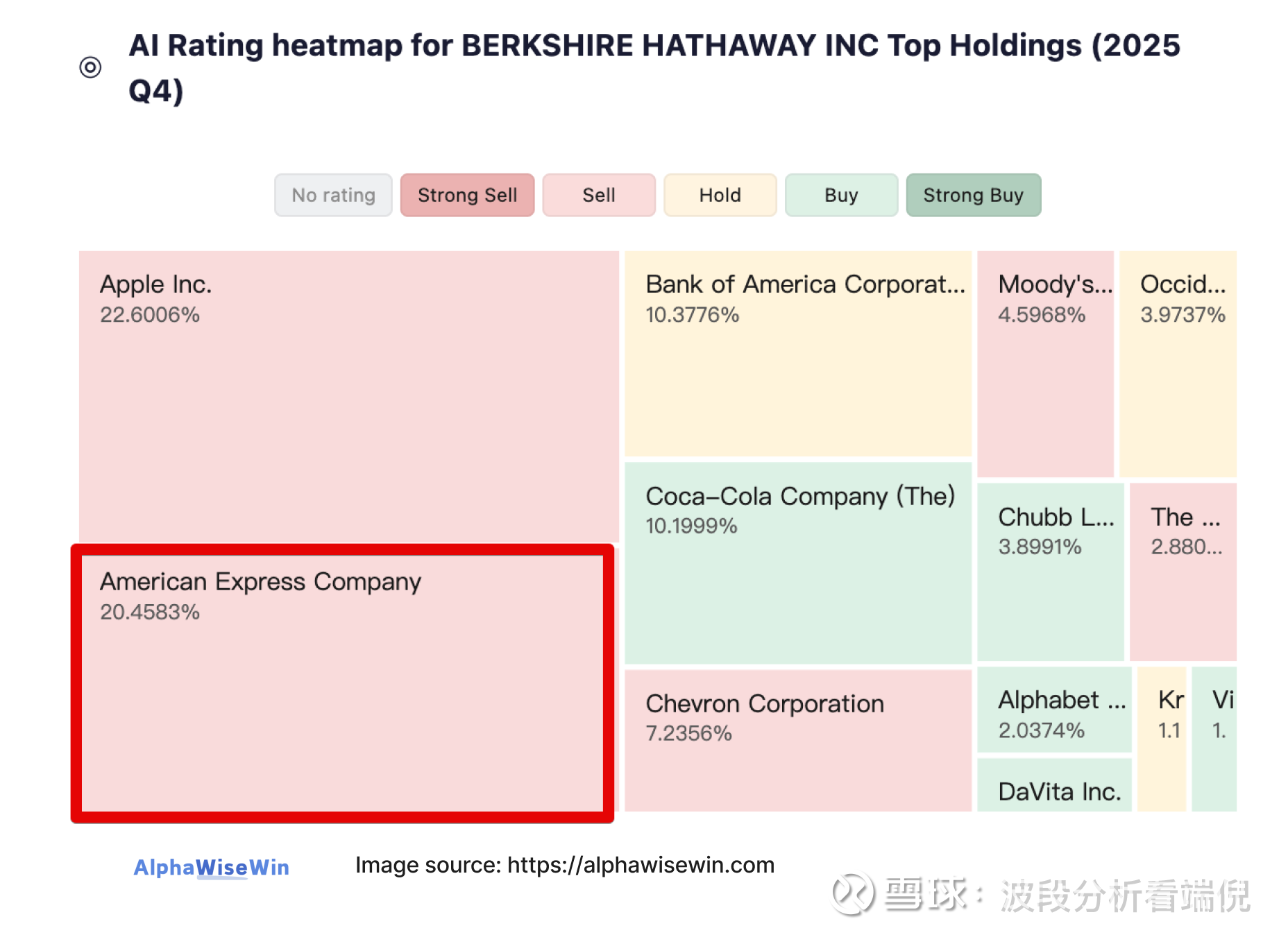 下图是伯克希尔在最近一次2025Q4披露的持仓,AXP在伯克希尔整体持仓中占比约20%,绝对的核心持仓。