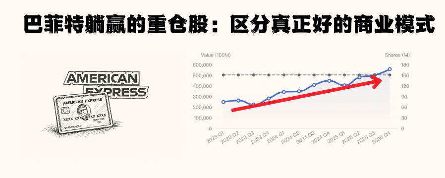 伯克希尔151.61M股不是买了之后忘记,而是在持续追踪AXP护城河的前提下,主动维持的持仓决策。AXP在3年里营收从$605亿增至$722亿,每年盈利验证持续稳固——这是"不动"的底气所在。普通投资者能学的,不是"无脑持有",而是"在理解商业模式的前提下,让持仓轨道自己运行"。