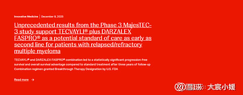 2025年12月10日 10:22 上海2025年12月9日,第67界ASH会议进入最后一天,强生也压轴发布了其BCMA/CD3双抗TECVAYLI,联合CD38单抗DARZALEX作为复发/难治性多发性骨髓瘤患者二线治疗的三期临床数据。