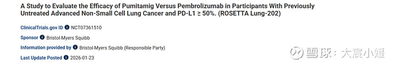 2026年1月24日 08:56 上海BMS接过BioNtech接力棒后,快速主导启动了两项PD-L1/VEGF双抗Pumitamig(BNT327)全球多中心2/3期临床,昨天又在非小细胞肺癌中启动两项三期临床试验,加速明显。