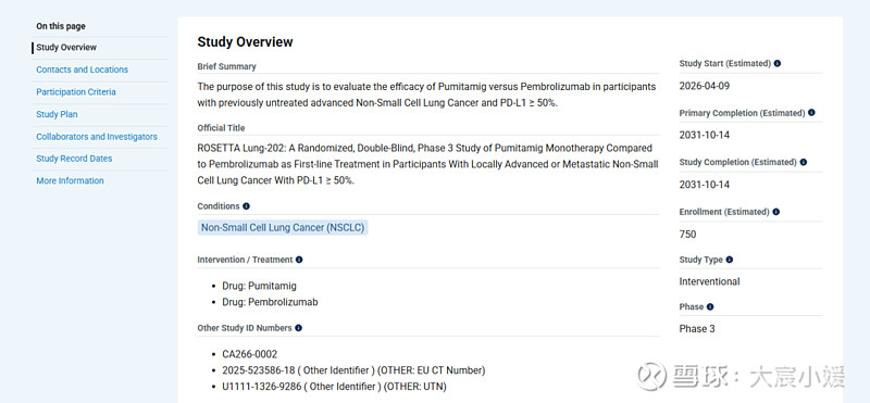 ROSETTA Lung-202(NCT07361510),该临床预计于2026年4月启动,入组人数为750例。