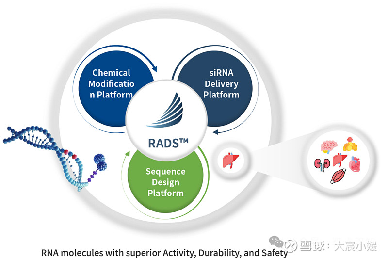 舶望制药的核心竞争力,源于自主研发的RADS平台(RNA with superior Activity、Durability、Safety)。该平台从序列设计、化学修饰、递送策略三大维度实现创新突破,达成“更强活性+更长效力+更优安全性”的三重目标,完美契合慢性病长期用药的核心需求。更强活性:通过高效靶点筛选与序列优化,提升药效特异性,实现致病基因的精准沉默,临床前数据显示,其靶蛋白抑制效率显著优于同类技术;更长效力:依托创新化学修饰与递送系统升级,支持季度、半年乃至“一年一针”的给药方案,从根本上解决慢性病患者长期用药的依从性难题;更优安全性:优化化学修饰方案降低脱靶毒性,同时适配肝靶向与肝外递送双重场景,为多适应症拓展奠定技术基础;成熟生产工艺:规模化生产技术实现关键突破,寡聚核酸合成效率提升40%,为管线快速推进与后续商业化落地提供坚实保障。这一平台的硬核实力,已通过诺华的两次战略合作得到最强行业背书。作为全球小核酸领域布局最激进的企业,诺华不仅以53.6亿美元获得舶望制药ANGPTL3靶向分子的全球权益,更追加合作锁定下一代分子的许可选择权,充分印证了其对RADS平台技术价值的高度认可。