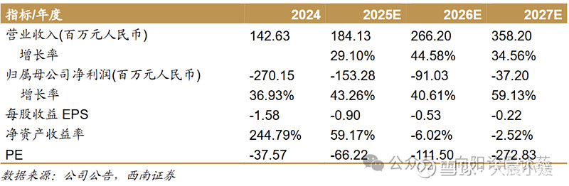 考虑公司暂未实现商业化,预计 2025-2027 年收入主要由合作收入构成。基于以上假设,我们预计公司2025-2027年收入分别为184.1/266.2/358.2 百万元,分别同 比+29.1%/+44.6%/+34.6%。