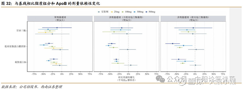 安全性方面,1 期多次剂量递增研究中,RBD5044 与安慰剂组 TEAE 分别为 61.1%(11/18)和 50%(3/6),其中 TRAE 分别为 2 例、1 例,所有 TRAE 均为 1 级。RBD5044 组中,与研究药物相关的 TEAE 包括:150mg 剂量队列出现的注射部位疼痛(1/6,16.7%)、90mg 剂量队列出现的丙氨酸转氨酶升高(2/6,33.3%)。此外,在 1 期最高剂量 150 毫克下也未出现剂量限制性毒性,为该产品拓宽临床治疗窗、实现强效降脂提供有力支撑。