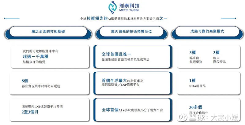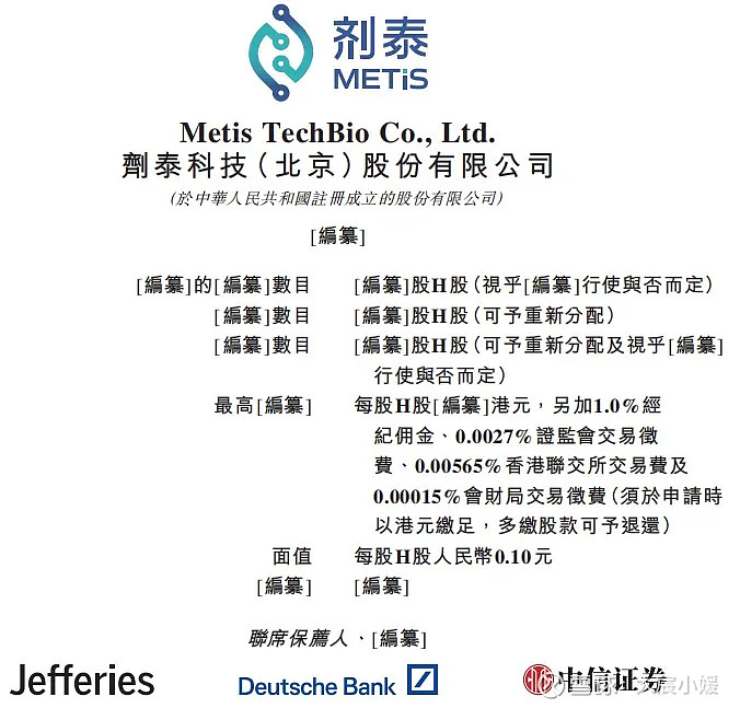 来源丨招股书、LiveReport大数据招股书丨点击文末“阅读原文”2026年3月25日,剂泰科技首次披露其港股上市招股书,拟以18C规则在香港主板上市,联席保荐人为Jefferies、德银、中信。公司此前为秘密递表,并已于2026年3月17日通过证监会备案,拟发行不超过2.73亿股境外上市普通股并在香港联合交易所上市。公司39名股东拟将所持合计8.52亿股境内未上市股份转为境外上市股份,并在香港联合交易所上市流通。公司是人工智能纳米材料创新的领军者,2024年收入0.01亿元,净亏损4.99亿元,毛利率55.53%。2025年前9月收入1.02亿元,净亏损2.47亿元,毛利率99.68%。公司报告期内业绩波动性较大。剂泰科技是人工智能纳米材料创新的领军者,致力于有效载荷(Payload)在所有生命形态中的递送与应用,秉承以AI纳米创新开启健康未来。NanoForge是公司专有的、协同整合的人工智能驱动纳米科技创新体系的基础,涵盖公司自主生成的庞大脂质库、人工智能基础模型、METiS智能体、量子化学与分子动力学模拟及人工智能驱动的高通量筛选平台。