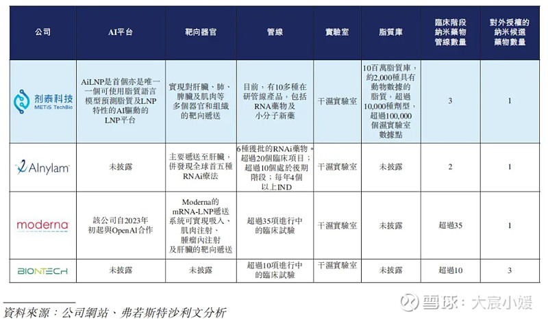 在此基础上,公司开发了三大专业的解决方案(即AiTEM、AiLNP及AiRNA平台),用以模拟、预测及阐释纳米级别的相互作用关系,从而实现对先进纳米材料及其相关有效载荷的合理设计、优化及验证。·AiTEM专注于小分子制剂的纳米级化学-生物相互作用;·AiLNP通过利用公司的专有脂质库以及生成及预测算法设计及优化脂质纳米颗粒(包括其组分及比例)解决生物分子及超分子的相互作用问题;·AiRNA(通常与AiLNP联合使用)通过将生成式人工智能应用于全长mRNA序列设计及优化(包括编码及非编码两个区域),以优化表达、稳定性及器官特异性翻译,从而最大限度地提高体内疗效。公司已构建业内首个规模最大及最多元化的脂质库,收录了超过一千万种结构多元化的脂质,为靶向递送奠定了基础。依托这一庞大的脂质库,公司开发出能够精准将有效载荷递送至多个不同器官的纳米材料。公司进展最快的候选药物(人工智能驱动剂型技术设计)可将临床前制剂开发时间从约1至2年缩短至少于3个月。根据弗若斯特沙利文的报告,MTS-004代表了采用人工智能驱动剂型技术设计进展最快的管线。