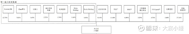 主要股东公司香港上市前的股东架构中:赖才达博士、Hongming Chen博士、王文首博士、Scientia HK、南京承泰裕鑫(由王博士控制的僱员激励平台)、Delos Holding(由赖博士控制的僱员激励平台)、杭州盛泰(由王博士控制的僱员激励平台)、Dechi Holding(由赖博士控制的僱员激励平台),构成公司的单一最大股东集团,合计持股约30.67%;领航资深独立投资者包括:中金持股约11.44%;HSG持股约6.89%;人保健康养老基金持股约5.29%;5Y Capital持股约4.78%;疌泉成达持股约3.68%。此外,北京格禾泰持股约0.10%;其他投资者合计持股约37.14%。