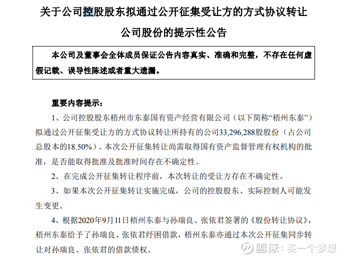 2020年9月,梧州东泰与华瑞股份原股东孙瑞良、张依君签署了《股份转让协议》。根据该协议,孙瑞良、张依君向梧州东泰转让1947.14万股公司股份,占公司总股本的10.82%。协议还约定,梧州东泰向孙瑞良、张依君提供不低于5亿元的纾困借款,专项用于偿还双方认可的债务。孙瑞良与梧州东泰签署了《股份表决权委托协议》,孙瑞良无条件、不可撤销地将其持有3451.05万股公司股份(占公司总股本的19.17%)对应的特定股东权利授权委托给梧州东泰行使,孙瑞良将在其持有的上述上市公司股份解除限售后,向甲方转让上述股份。