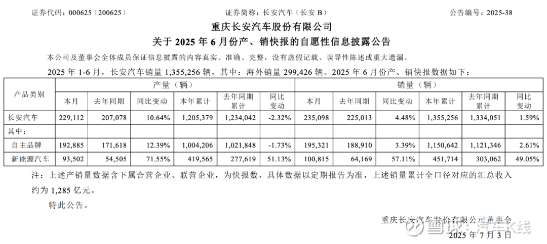 另值得一提的是,不知是何种原因,长安汽车,从6月开始,作为上市公司本应该更加透明,但其销量数据却变得神秘起来,不再如之前那样,将自主与合资板块的销量数据逐一公布,给投资者提供清晰透明的参考。