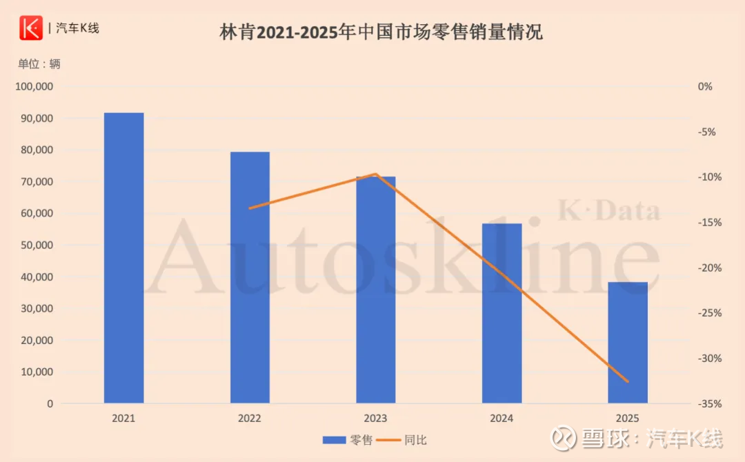 从2021年的突破9万辆,到2025年的约4万辆规模,林肯在中国市场画出了一条陡峭的下行线。