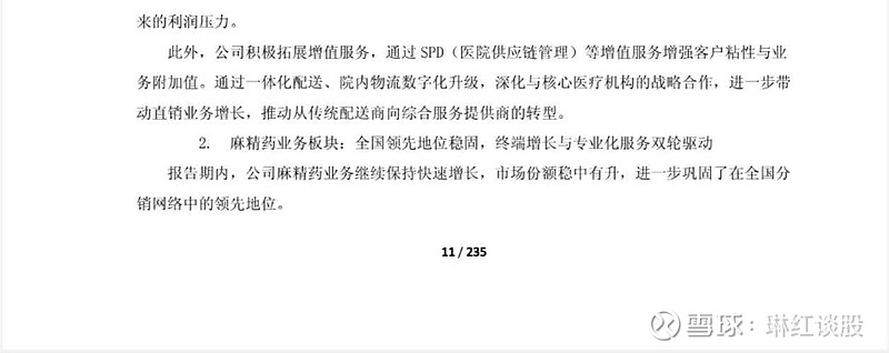 $国药股份(SH600511)$ 来个“麻精药继续保持快速增长,市场份额稳中有升”说明优势越来越大了,这块的纯精麻药提供的净利润毛估估约15.5亿,同比增长速度超19%,这块估值多年来保持二位数增长,合理价格可以给20倍,估值310亿,账上现金114亿,完全可以分掉90亿,不影响企业经营,资本开支不到一个亿。合理价格理应可以在400亿,其他业务板块全部免费赠送。可惜资金打满了